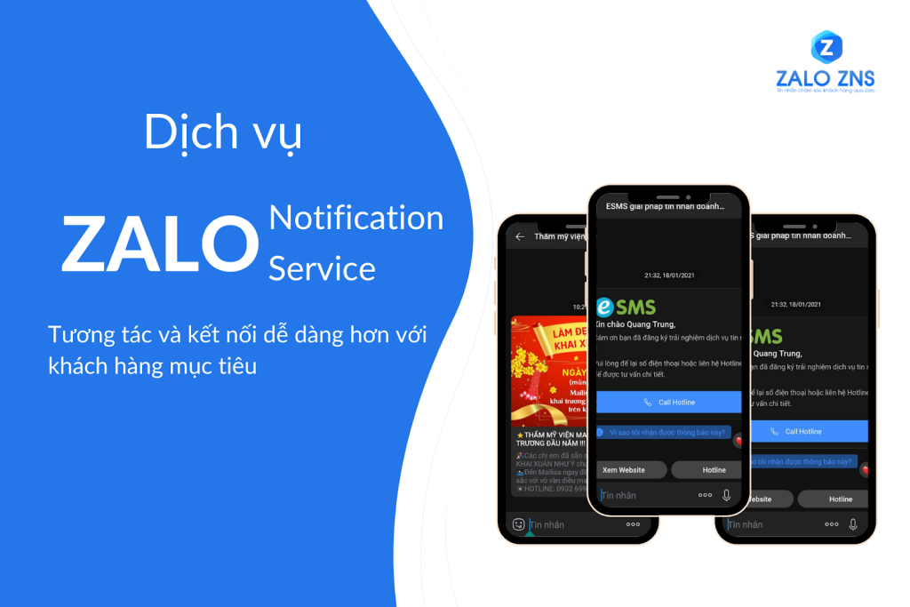 Với mục đích cung cấp một kênh thông tin chính thống trên Zalo cho doanh nghiệp, ZNS hỗ trợ việc gửi thông báo cho các hoạt động giao dịch, chăm sóc khách hàng, hậu mãi,..